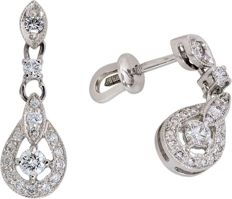 Купить в Тюмени Серьги с подвесной частью 141321ю Серьги Золото белое (Изделия с бриллиантами Серьги с подвесной частью пусеты ). Стоимость без скидки: 364794 рублей.