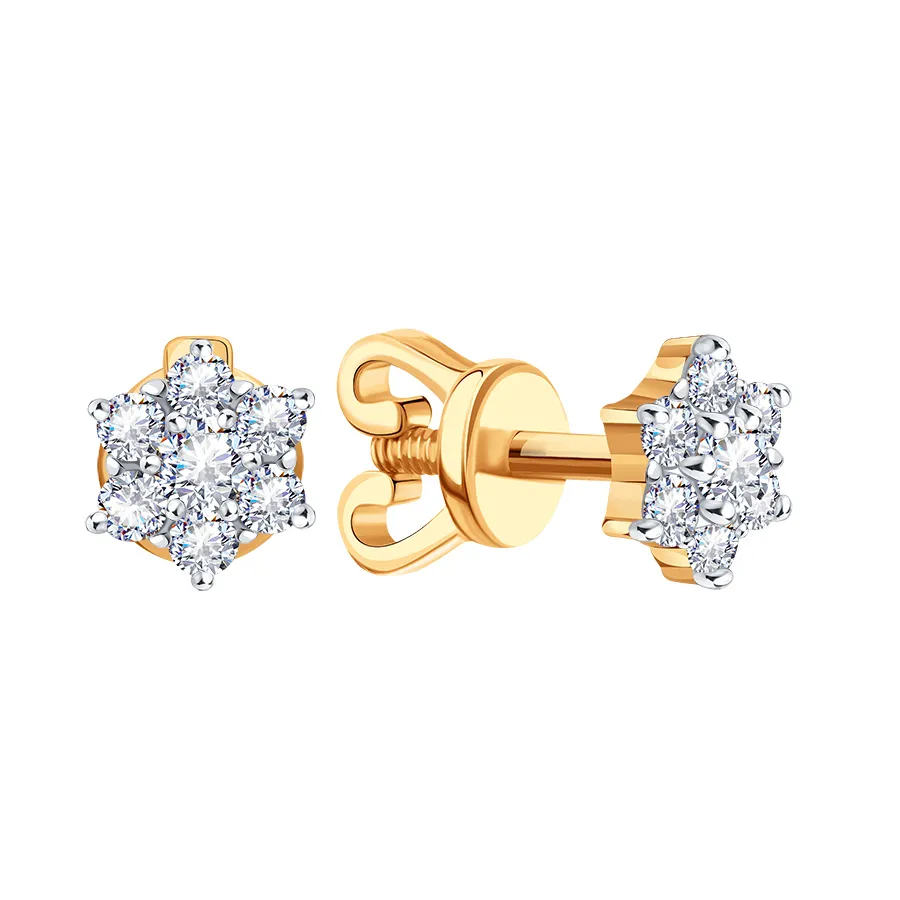 Серьги пусеты-гвоздики, Золото 585, Т14202В821