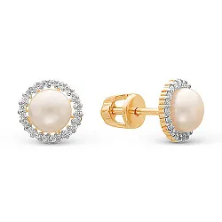 Серьги, Золото 585, Жемчуг Z2-10483