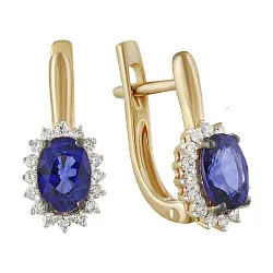 Золотые серьги с голубыми камнями